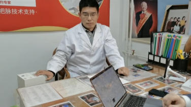 中国中医科学院广安门医院南区卢福成大夫把脉贵州患者同时视频交流