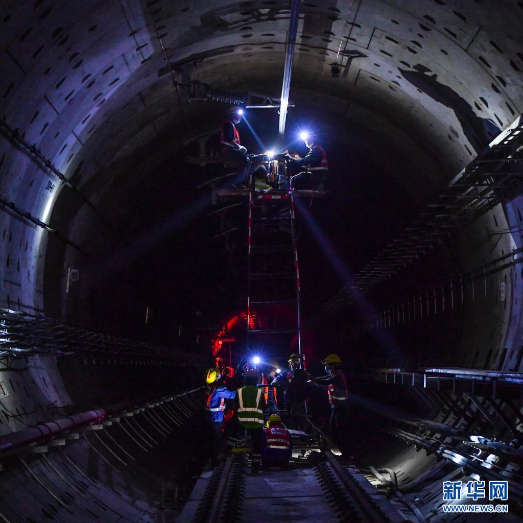 4月20日,施工人员在广州地铁18号线龙潭至磨碟沙区间隧道内进行机电安装调试。