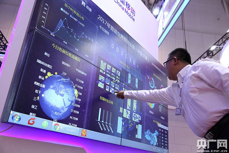 首届世界智能大会观众观看大数据统计(央广网记者刘阳 摄)