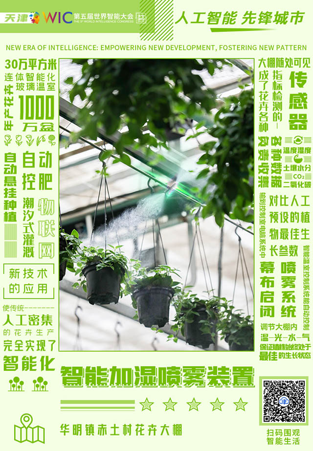 它是智能加湿喷雾装置,和它的智能小伙伴们效力于东丽区华明镇赤土村东信花卉大棚。