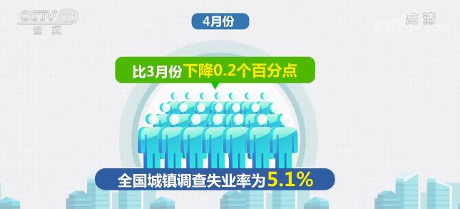 尤为难得的是,4月份,居民消费价格总体平稳,就业形势总体稳定。1—4月份,全国城镇新增就业437万人。4月份,全国城镇调查失业率为5.1%,比3月份下降0.2个百分点。