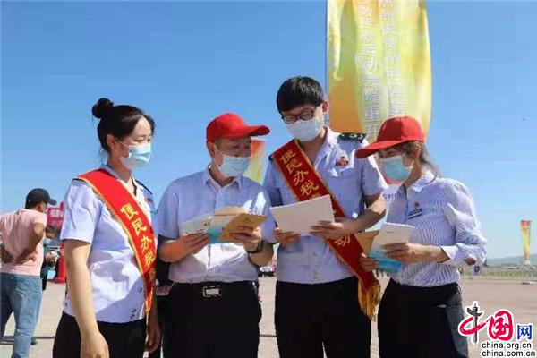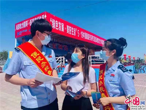 精河县税务局借助旅游节游人众多、商户小贩集中的优势,组建便民办税春风行动“税宣小分队”走进赛马场开展税惠政策宣传活动。在开幕式上,“税宣小分队”向来参观的游客宣传减税降费政策,为旅游业助力。