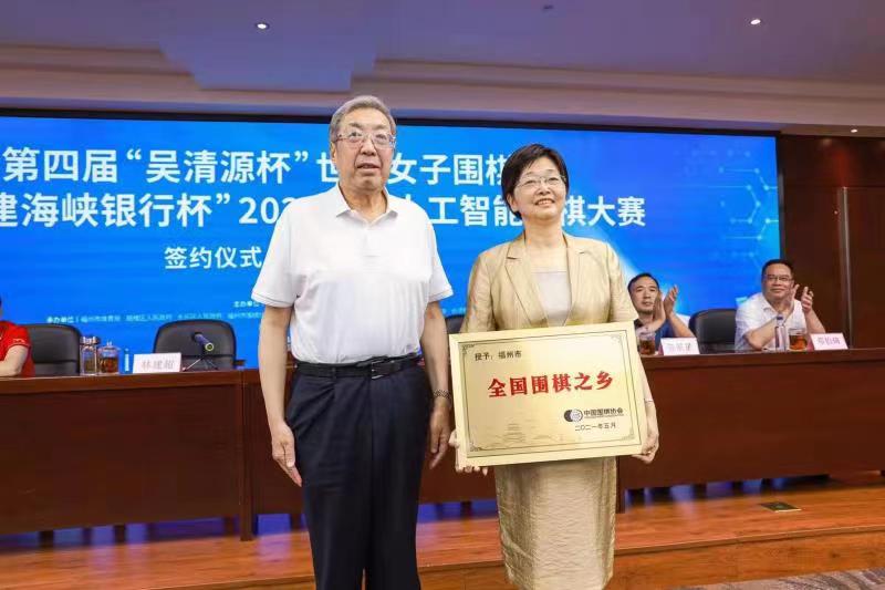 发布会上,福州市被中国围棋协会授予“全国围棋之乡”荣誉称号。福州成了全国唯一一个既是“围棋名城”又是“围棋之乡”的城市。 中国围棋协会还与福州市体育局现场签约,未来三届的吴清源杯世界女子围棋赛暨世界人工智能围棋大赛将继续落户福州。