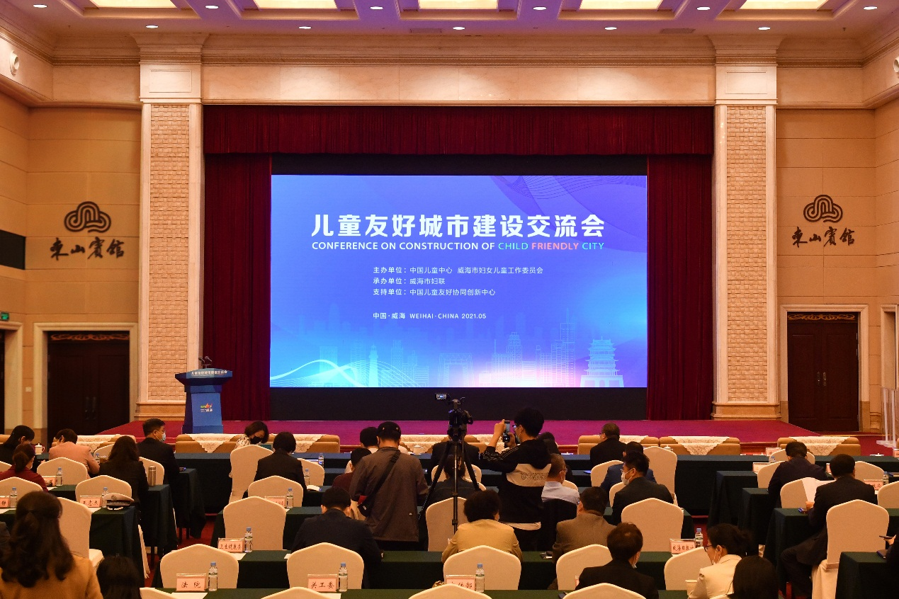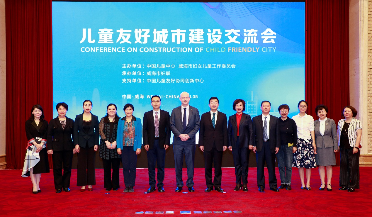 5月18日,由中国儿童中心和威海市妇女儿童工作委员会办公室共同主办的威海市儿童友好城市建设交流会(以下简称“交流会”)在威海市东山宾馆迎宾会堂顺利召开。联合国儿童基金会驻华办事处副代表郑道(Douglas Noble),国务院妇女儿童工作委员会办公室副主任贺连辉,中国儿童中心党委书记丛中笑,山东省妇联党组书记、主席孙丰华,中国城市规划协会女规划师委员会副主任兼秘书长、中国城市规划设计研究院副总规划师张菁,山东省妇儿工委办公室专职副主任、一级调研员孔静珣,以及威海市委书记张海波,威海市委常委、组织部长刘升勤,威海市政府副市长、市妇儿工委主任叶立耘出席交流会。深圳市妇儿工委办公室副主任孟敏、上海浦东新区妇联主席、妇儿工委办公室副主任王丽蓉、北京博源拓智儿童公益发展中心创始人李萍分别从城市、社区和儿童参与的角度带来主题分享。威海市儿童友好型城市创建工作专班成员及联络员,各区市、国家级开发区妇联主席,儿童友好试点单位负责人,部分儿童友好服务项目认领企业及项目单位负责人,以及儿童代表等百余人参会。