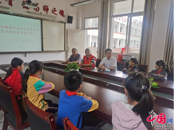 中国网讯 5月26日,眉山市东坡区区关工委副主任李志康、崇礼镇党委副书记范泽龙、水天花月党支部书记郭成章一行8人,先后走进陈竹希望学校、家相小学、崇礼小学、东坡二中四个学校为80名学生送去慰问助学资金。