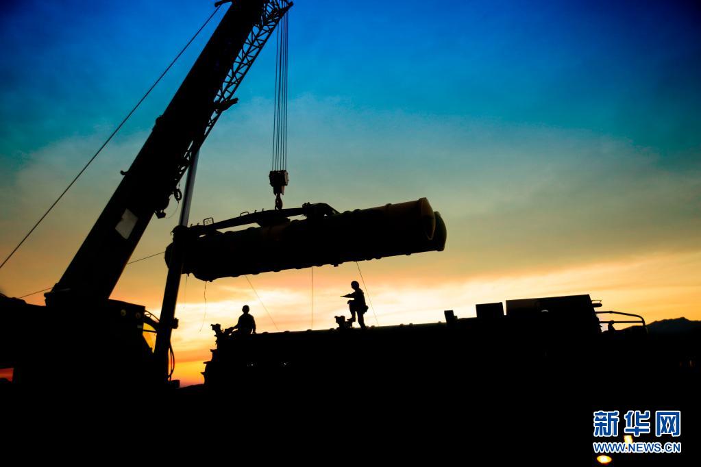 中部战区空军地空导弹某旅“英雄营”组织导弹吊装(2016年6月17日摄)。新华社发(朱姜海 摄)
