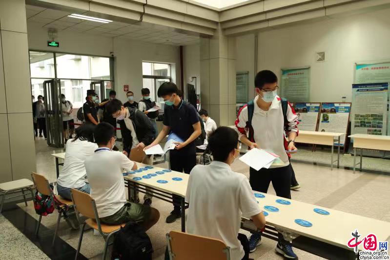2019级国科大本科生宋京舟,是两年前通过综合评价选拔的方式录取的北京籍考生,如今作为学生志愿者出现在综评引导工作现场,“看到今天的考生,仿佛看到了曾经的自己。”宋京舟说,“在国科大,我认识了很多学术水平很高但为人非常真诚低调的老师,他们聊起自己的研究方向,眼里都会闪着光;我也结识了很多愿意深入讨论课业问题的同学与好友,我渐渐喜欢上科研这条路,喜欢静心学习科学的快乐。”宋京舟最后祝愿各位考生,能够在九月如期如愿走入国科大静谧的校园。(摄影杨天鹏)