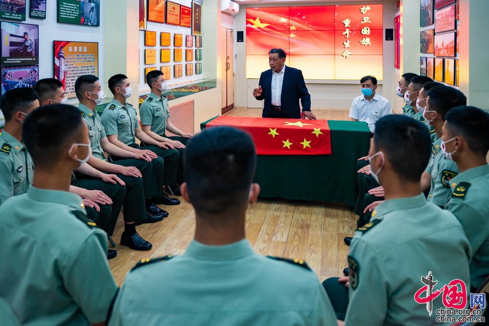 讲解结束后,沙勒克江·依明与解放军仪仗大队国旗护卫队战士在荣誉室里进行了一场爱国主义和民族团结的宣讲,沙大叔用质朴的语言为战士们讲述了自己与国旗的不解情缘。中国网记者 郑亮摄