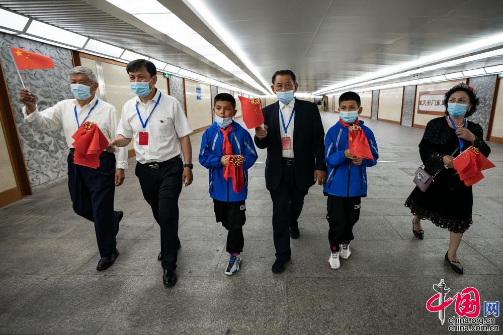 沙勒克江一家能来到天安门广场向国旗致敬,还是两个孙子的功劳。2021年5月初,他们将爷爷升国旗的故事写信托老师寄给中国人民解放军仪仗大队国旗护卫队。让人惊喜的是,沙勒克江一家收到了邀请:6月1日国际儿童节当天,到北京参加天安门广场升旗仪式,并与国旗护卫队开展互动交流。当天凌晨,沙勒克江一家祖孙三代早早的便前往天安门广场。中国网记者 郑亮摄