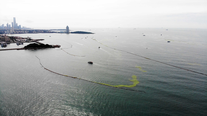为全面应对浒苔绿潮灾害,青岛市按照“近岸防御、突出重点,由近及远、先急后缓”的原则,利用卫星遥感、直升机、海上巡航、近岸监控、浒苔追踪器等多手段,加大监测预报和信息综合研判,根据浒苔动态分布情况,及时调整海上拦截力量,优化近岸拦截网布设,全力实施海上阻截浒苔。