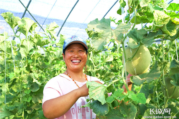 看到自己家采摘大棚种植的哈密瓜长势良好,村民笑逐颜开。长城网记者 张谢雅 摄