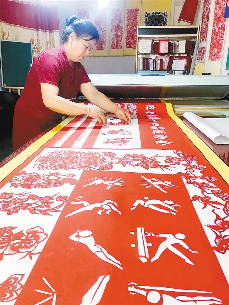 本报讯(记者 王涛 通讯员 陈维涛)一幅长15米的剪纸,不仅展示了第十四届全国运动会的会徽和吉祥物,还展示了曲棍球、足球、手球、击剑、武术等200余项运动项目。6月20日,鄠邑区庞光街道的非遗传承人杨彩霞历时四个月完成的长达15米的剪纸长卷惊艳亮相,她希望用“手艺”给第十四届全国运动会献礼。