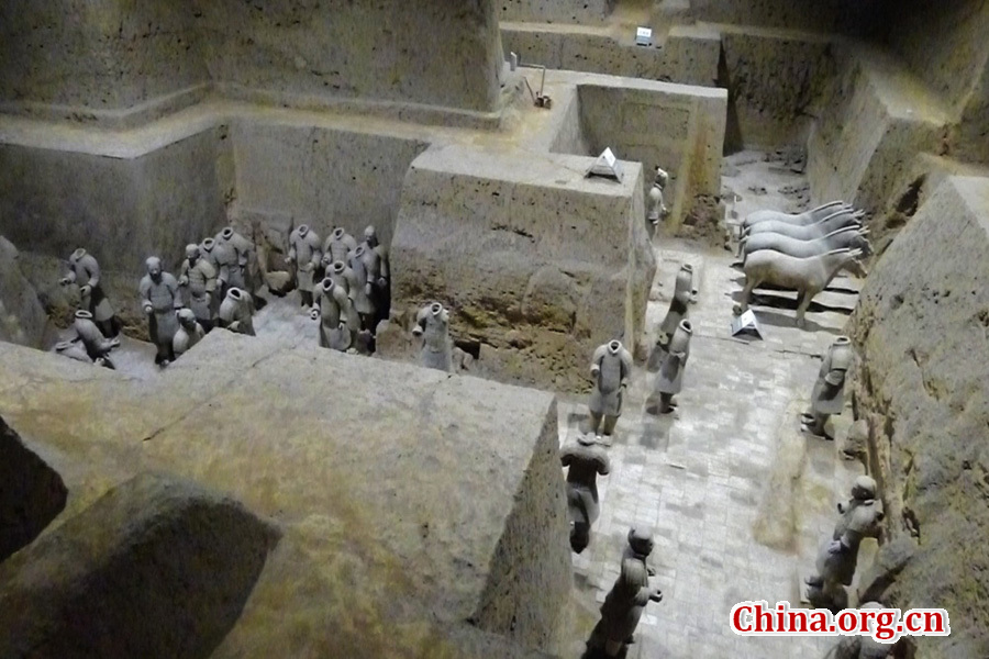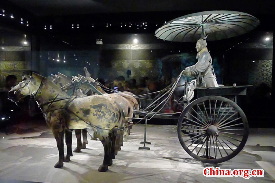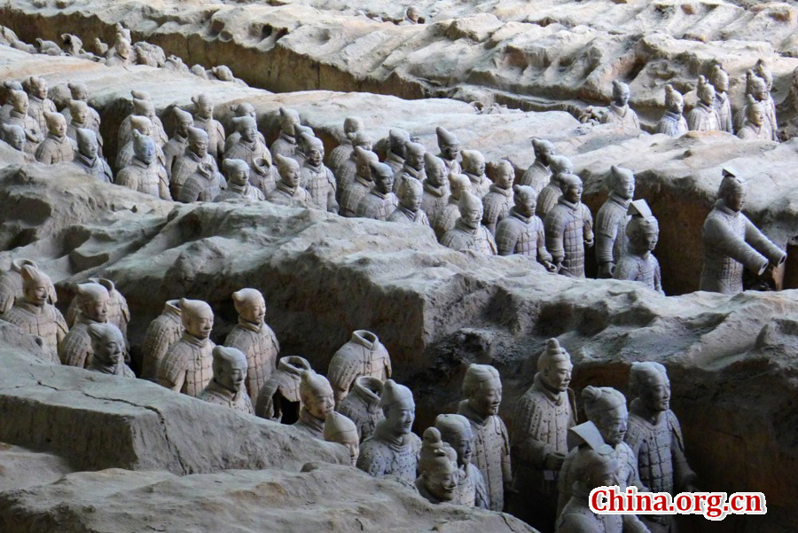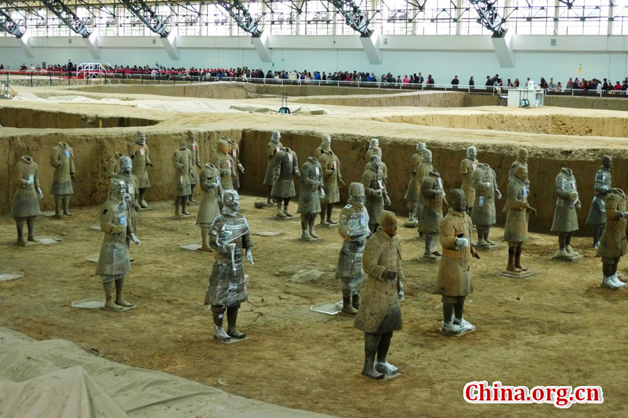 The museum consists of three huge pits, as well as the hall of the two bronze chariots and horses. Covering an area of 22,780 square meters, more than 8,000 terra cotta soldiers and horses, as well as more than 10,000 bronze weapons, were discovered across the three different pits. The museum is a treasure trove of the Qin Dynasty's military, science and technology, art and culture. It has been listed as an UNESCO World Heritage Site. (Source: China.org.cn/Han Bo)