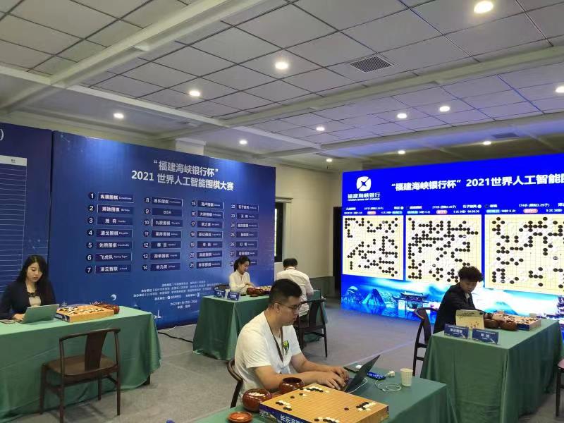 7月20日, “福建海峡银行杯” 世界人工智能赛进行第一阶段最后两轮比赛,除小分爆棚的天狗已提前两轮晋级外,积8分的大胖、碁幻传说、鱼围棋和星阵,积6分小分列前的石子旋风、超然、辛几何等队均厉马秣兵,枕戈待旦,为四强席位而战。