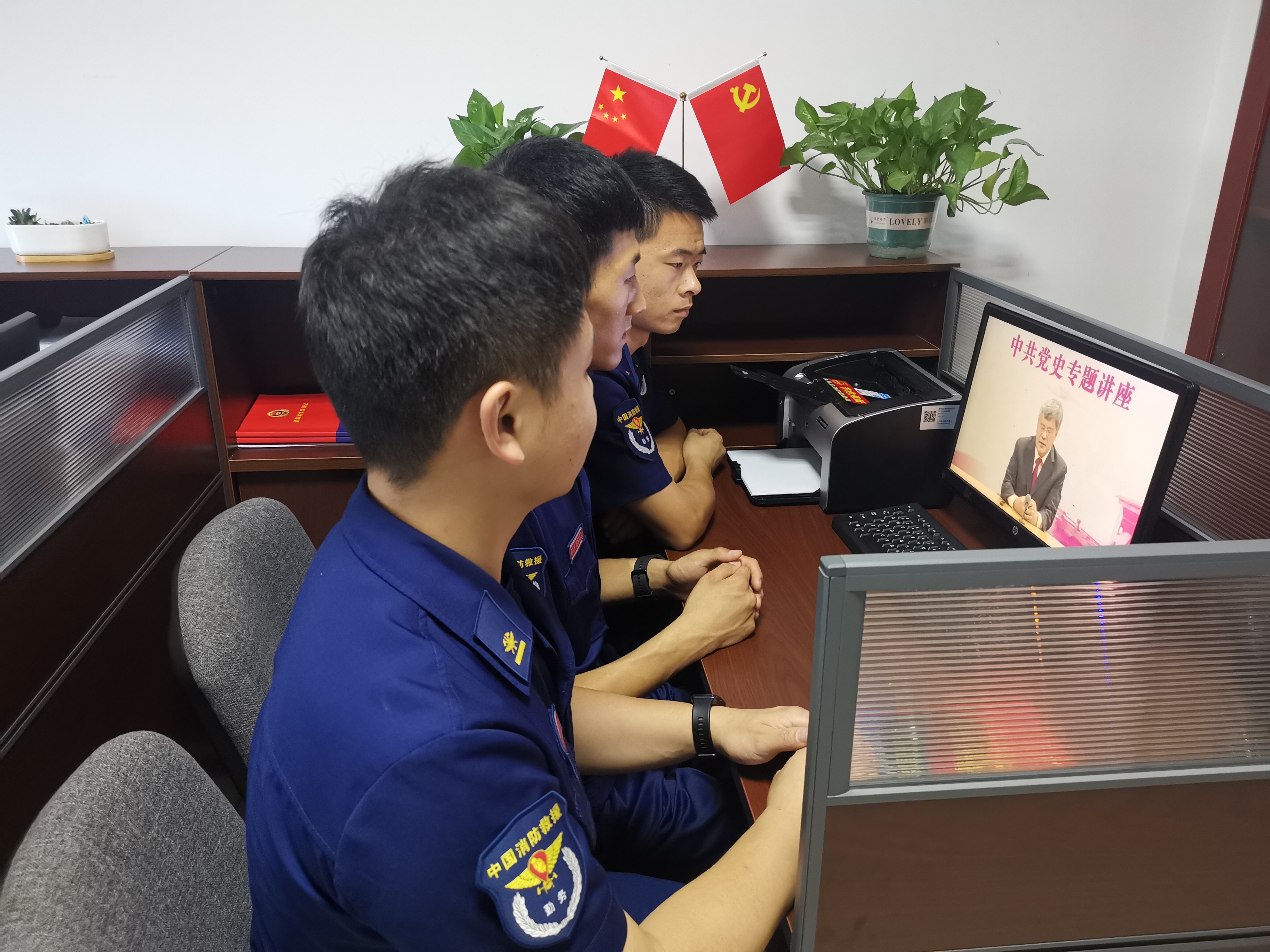 线上延伸,多渠道在丰富载体上求“新”。一是用好“网络线”。联合区委党校打造“云端”课堂,充分发挥区委党校、党员教育师资库等资源,组织指战员通过“钉钉”智能办公平台收听收看专题授课5次。在支队网站搭建网络学习教育平台,收集整理总书记系列重要讲话学习资料包、全国党员教育优秀课件等优质学习资料,做到定期更新、资源共享、随时学习。二是画好“指尖线”。依托微信公众号、微博等新媒体,发布党史学习教育要点、党建知识、时政要闻等内容,让指战员随时随地能够读原文评述、看新闻解读、听广播评论,最大限度提高学习覆盖面和自由度。三是注重“活动线”。利用主题党日、“三会一课”等时机,开展读红色经典、观红色展馆、看红色电影、唱红色歌曲、讲红色故事、吟红色诗词等“红色活动”,不断增强学习实效性和感染力,让指战员真正学有所思、学有所获、学有所得。