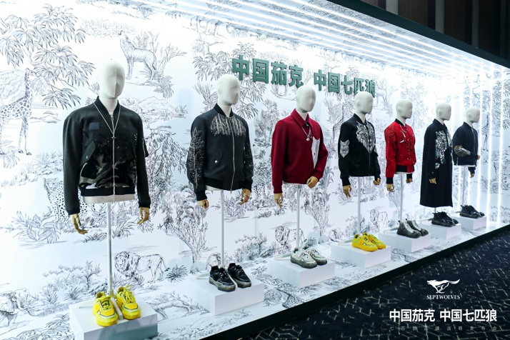 而如何迎合整个公众年轻消费者对品牌的这个期待的诉求?“他们希望你是一个民族的强者,是一个有能力讲述中国故事、展现中国态度的时尚品牌,所以我们认为我们要抓住这个机遇,首先,我们七匹狼是中国男装品牌的开创者,32年前,当中国男装还没有品牌这个概念的时候,市场上流行的服装品牌大都是英文或者字母组合,我们七匹狼就用“七匹狼”三个中文字绣在了我们的服装上。所以七匹狼打上中国七匹狼这个词,我觉得是很自然的,这是历史的见证,也是当之无愧的。今天,七匹狼更应该主动扛起民族时尚品牌的大旗”。
