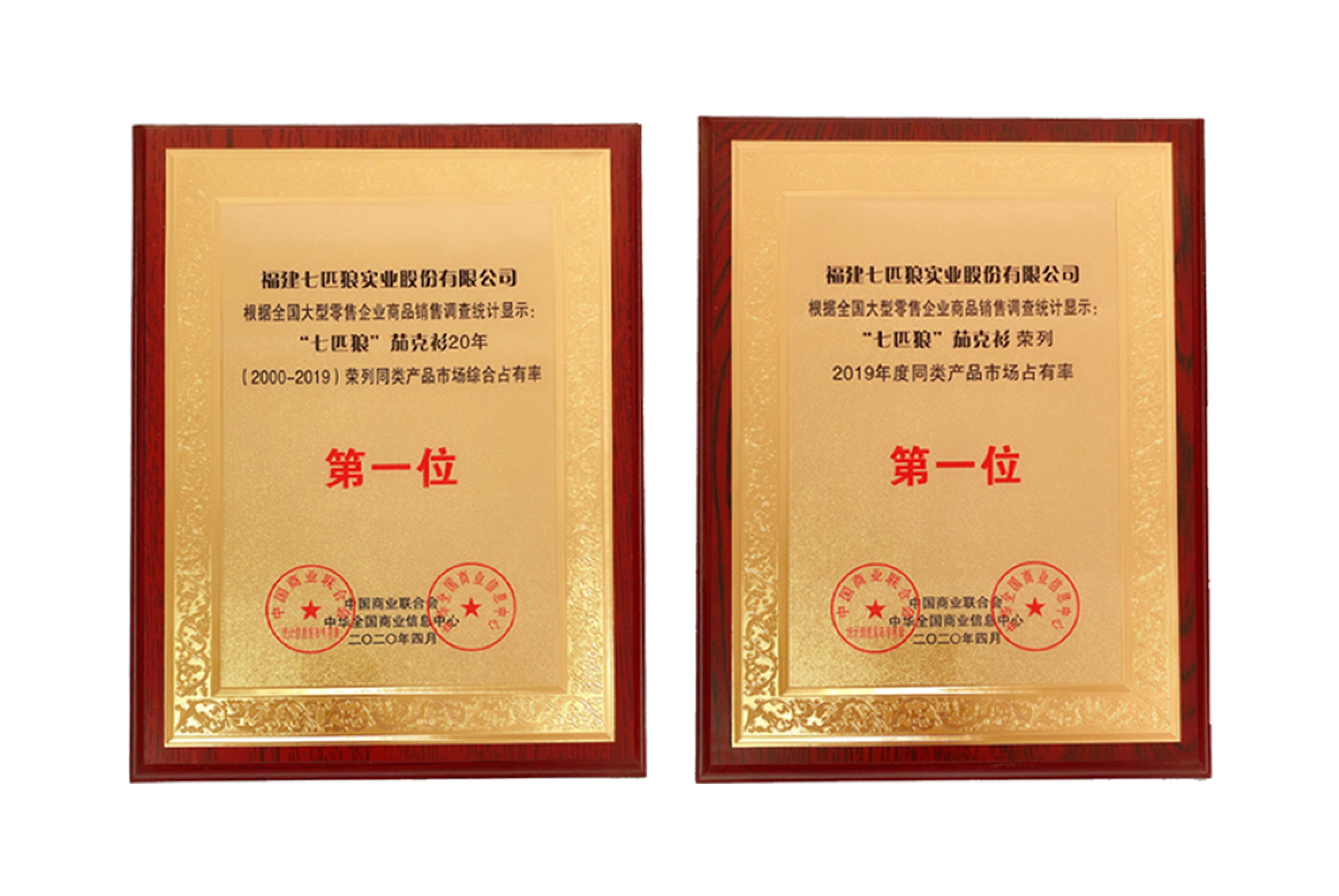 今年4月,由中国商业联合会、中华全国商业信息中心共同主办的“2021(第29届)中国市场商品销售统计结果发布会”在北京举行。会上,七匹狼茄克衫斩获“2020年度同类产品市场综合占有率第一位”和“21年(2000-2020)荣列同类产品市场综合占有率第一位”两个奖项。连续21年茄克品类国内市场占有率第一,这是消费者对于七匹狼茄克的最高肯定。