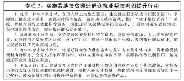 稳定脱贫人口就业。健全脱贫人口、农村低收入人口就业帮扶长效机制,保持脱贫人口就业领域的扶持政策、资金支持、帮扶力量总体稳定。健全有组织劳务输出工作机制,将脱贫人口作为优先保障对象,稳定外出务工规模。支持脱贫地区大力发展当地优势特色产业,继续发挥就业帮扶车间、社区工厂、卫星工厂等就业载体作用,为脱贫人口创造就地就近就业机会。聚焦国家乡村振兴重点帮扶县、易地扶贫搬迁安置区,积极引进适合当地群众就业需求的劳动密集型、生态友好型企业(项目),增加本地就业岗位,组织专项就业服务活动实施集中帮扶。