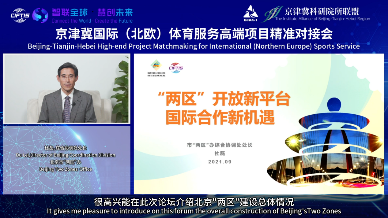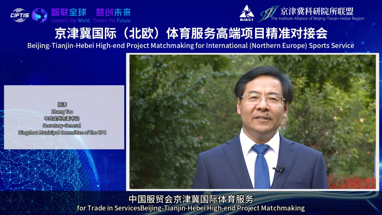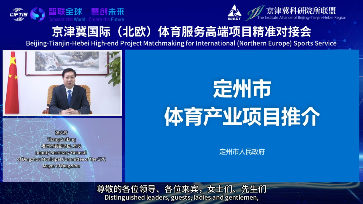 中国网9月7日讯(记者 葛蕾) 6日下午服贸会举办期间,“智联全球·慧创未来”京津冀国际(北欧)体育服务高端项目精准对接会顺利召开。会议由北京市科学技术研究院、北京市“两区”办、河北省定州市人民政府和京津冀科研院所联盟主办,北京对外科学技术交流中心、北京北科控股有限公司和挪威北极绿色发展有限公司承办。会议围绕“智联全球·慧创未来”主题,突出“一带一路”与“京津冀协同发展”两条主线,以“科技奥运”“体育服务”为重点领域,采用“线上”方式举行并通过服贸会官方指定直播平台进行展示。北京市科学技术研究院副院长邵锦文、河北省定州市委书记张涛为大会致辞,定州市委副书记、市长张才芳推介定州体育产业,北京市“两区”办处长杜磊推介两区政策。