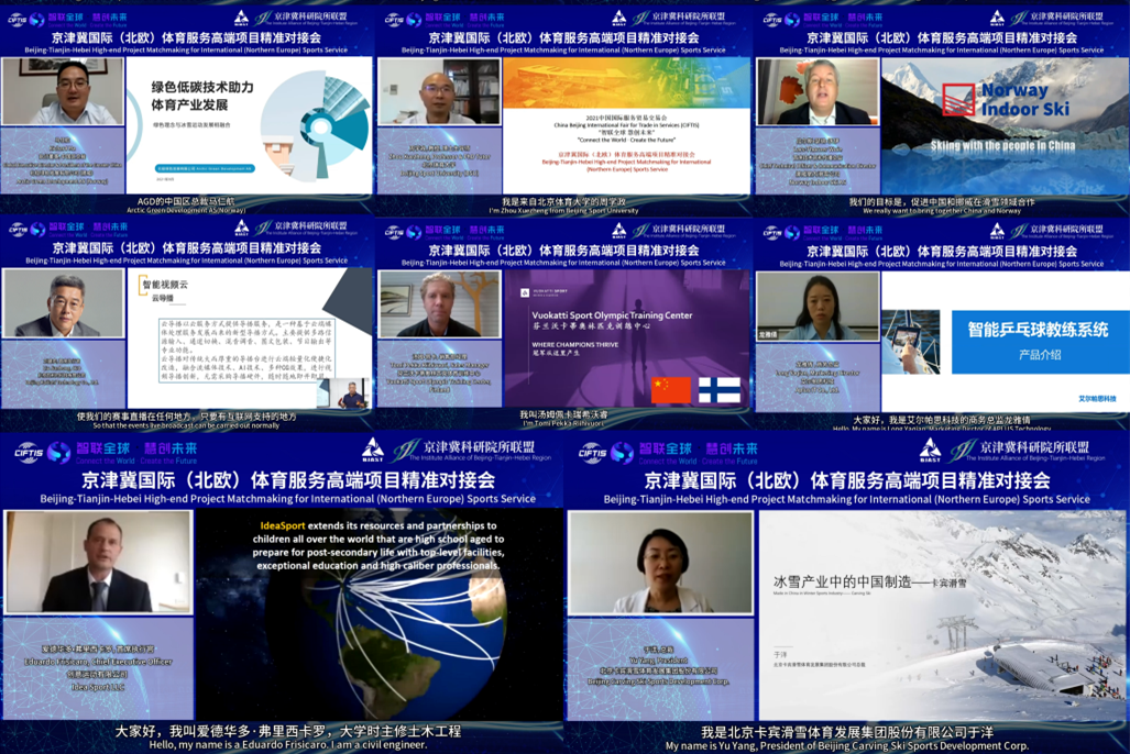 北极绿色发展有限公司(挪威)、北京体育大学、挪威室内滑雪公司、北京凯利时科技有限公司、芬兰沃卡蒂奥林匹克体育训练中心、艾尔帕思科技、创意运动有限公司和北京卡宾滑雪体育发展集团股份有限公司等9家北欧国家以及京津冀等地区的高校、创新企业等机构发布了体育服务领域优质项目。中国网作为合作媒体为本次对接会提供独家媒体支持。
