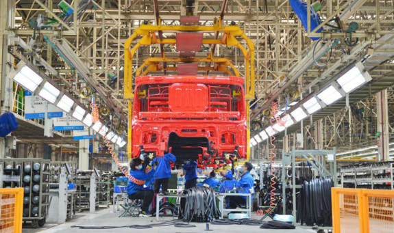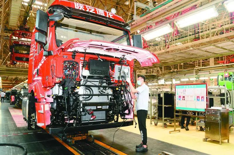 走进陕汽汽车总装配厂内饰车间,流水线上,一颗颗螺栓随着电动工具旋转入扣,电线敷设、安装内衬、挡风装配,一台台珠光钼红驾驶室在工人们认真细致的装配中整齐下线。映入眼帘的ABB涂胶机器人,以高精度高效率保证着X6000驾驶室的质量稳定性;有序运行的AGV(自动导航小车)在SPS台套配送模式下,进行着物料精准化配送,有效提升了生产柔性。目前,陕汽汽车总装配厂内饰车间生产节拍压缩至3分钟,日产能从380台驾驶室提升至440台。