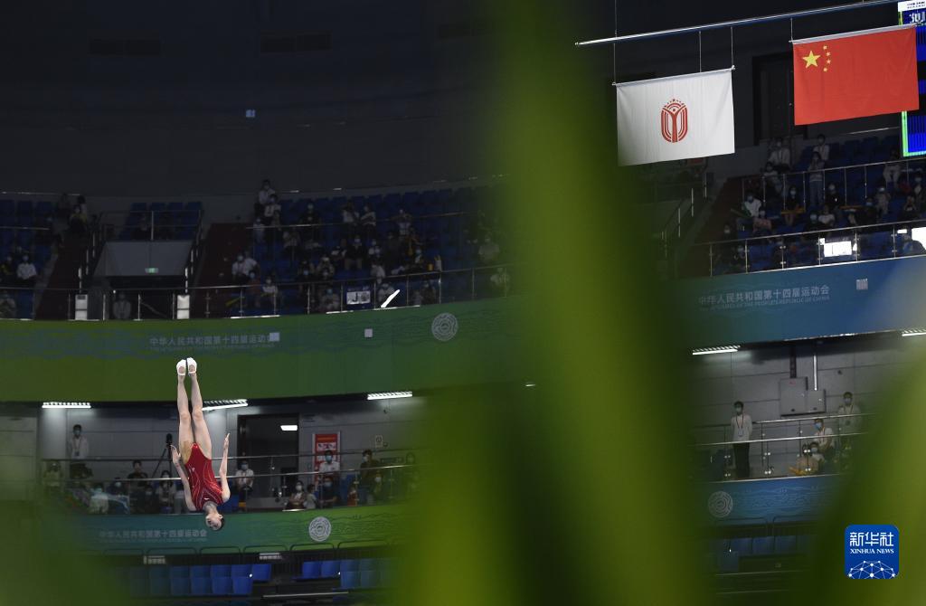 9月5日,福建队选手刘灵玲在全运会蹦床女子团体决赛比赛中。