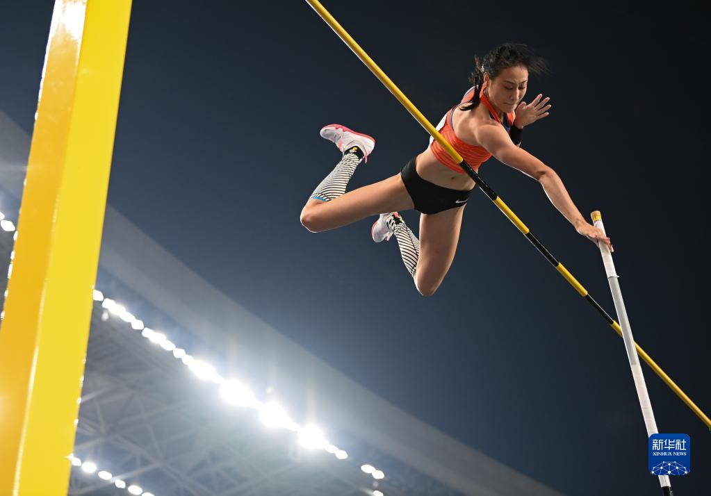 9月22日,浙江队选手李玲在全运会女子撑竿跳高决赛中。