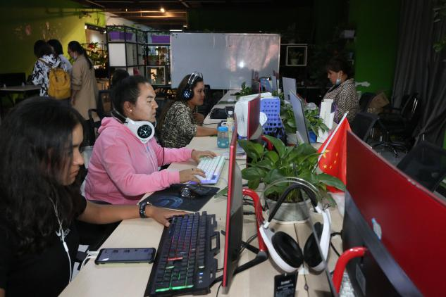 喀什古城众创空间入驻企业相关工作人员正在工作