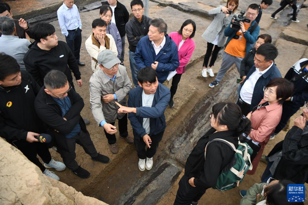 10月9日,几名专家在湖南常德澧县鸡叫城遗址讨论。