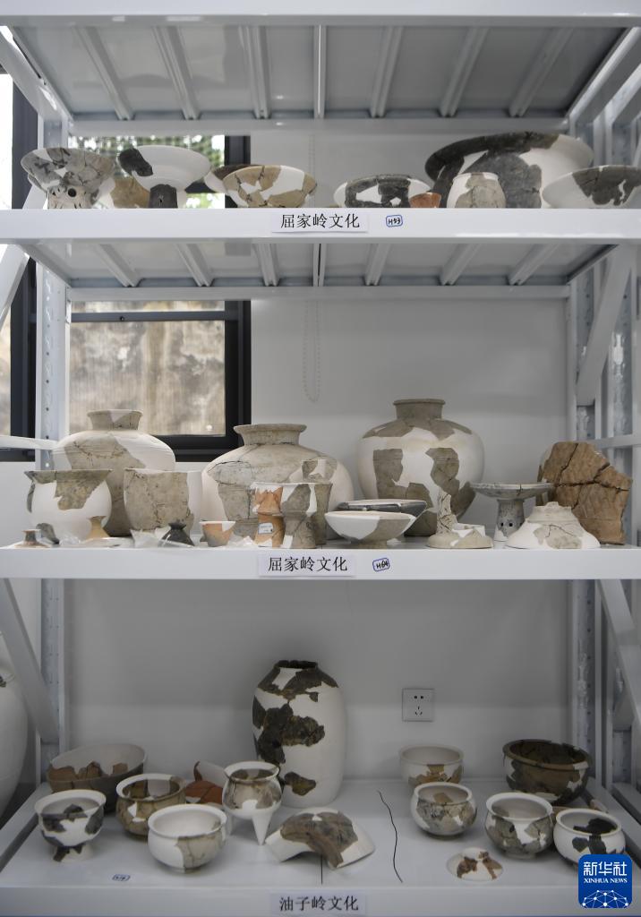 这是10月9日在湖南常德澧县澧阳平原考古工作站拍摄的鸡叫城遗址出土的陶器。