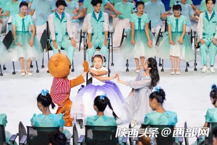 爱心涌动,温暖四方,3900万三秦儿女喜迎盛会,张开欢迎的臂膀;石榴花海,灿烂盛放,8500万残疾人在灿烂的阳光下,绽放共同的梦想。文体展演在柔美的灯光、荡漾的石榴花海中拉开序幕。“轮椅女孩”小悦悦和妈妈一起走上舞台,走进了所有人共同编织的“美丽之梦”:《温暖》《自强》《绽放》三个篇章依次展开。