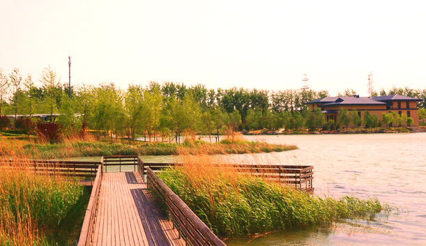 河水向东穿越四环路,经过小武基、翠城馨园、十八里店到五环外,这一段叫“古都溢彩”描述普通老百姓的生活,西起弘燕路的源头广场的“运河怀古”,一个白色帆船形状的雕塑,象征着扬帆起航,“河面船只穿行,河岸行人如织”的热闹场面。再向东还有“马家湾之忆”、“田园鱼跃”等景观带。沿途有“磨坊汀步”、“周庄码头”、“青龙平眺”、“铜帮铁底”等22个根据历史记载修建景点,重新焕发新生的绿色滨水廊道。而今,马家湾湿地公园已接待市民游客,从化工桥开始,沿着渐宽河道便进入公园去追寻“马家湾之忆”。这里“有山有水有城”,依偎于萧太后河,地形起伏错落,形成湖山相映的独特景观。露天平台、亲水码头、辽代古桥、芦苇荷花,构成了西南近郊一道“江南水乡”美丽风景。