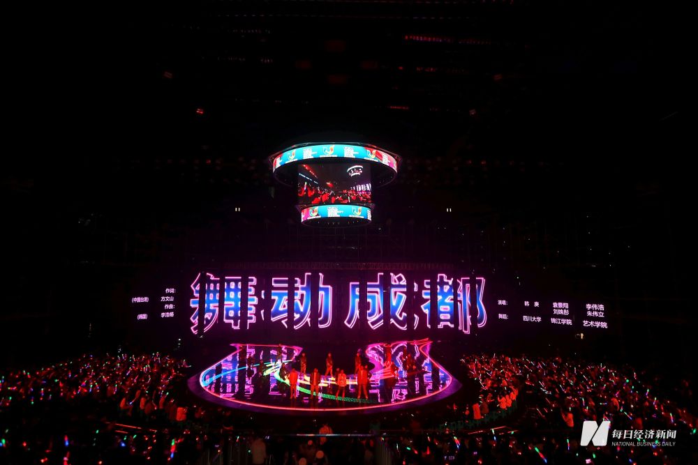 现场,从大运会歌曲征集活动中脱颖而出的多个优秀音乐作品,在为现场观众带来一场精彩绝伦的视听盛宴的同时,也以国际元素和青春风采的表达方式向全世界传递着大运精神,邀请全世界大学生参与大运会,传递出成都携手世界办好大运会的信心和力量。