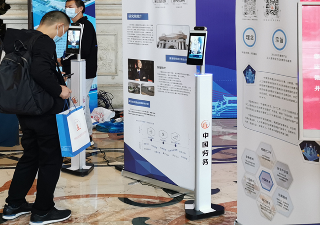 参会者正在通过“中国劳务”疫情防控系统进行即时注册