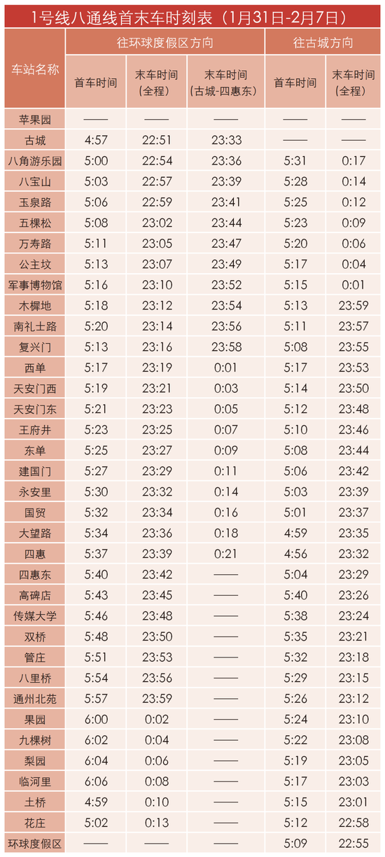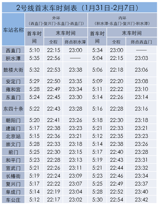 2022年2月1日(星期二)6:20起至7:20止,1号线天安门东站、天安门西站、2号线及8号线前门站采取临时封闭措施,期间各次列车在上述车站通过不停车,前门站停止2号线和8号线换乘。