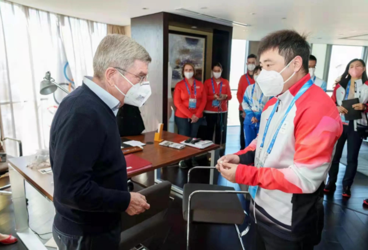 2月18日,国际奥委会主席巴赫来到大家庭酒店看望慰问志愿者及服务保障工作人员,当巴赫主席走到消防员张擘宇身边时问道:“Youarefromwhichdepartment(你来自那个部门)?”张擘宇自豪地回答:“ExcellencyMr.Bach,I’mafirefighter,fromChaoyangDistrictFireandRescueBrigadeofBeijing(尊敬的巴赫先生,我是一名消防员,来自北京市朝阳区消防救援支队).”巴赫主席说道:“Welldone,thanksforyourworks(真棒!感谢你们的辛勤工作).”随后,巴赫主席向张擘宇赠送了徽章作为留念。