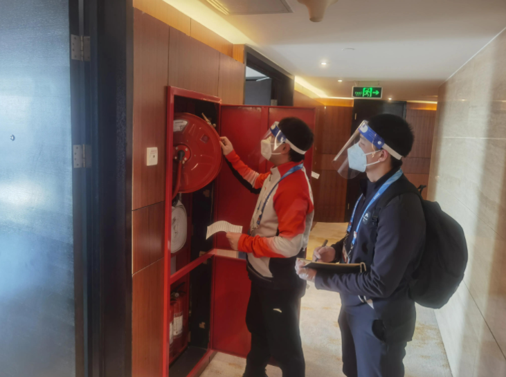 今年1月2日,大家庭酒店消防安保团队的张擘宇成为首名进入“闭环”的消防员开展日常安保工作,已经整整52天没有回家了,每日的巡视巡查、宣传培训、模拟演练让他的“闭环”工作非常充实,他深知,做好国际奥委会工作人员的服务保障工作,要在思想上高度重视,坚持最严检查标准,最实工作举措,用精精益求精、万万无一失的工作理念,确保安保任务圆满完成。
