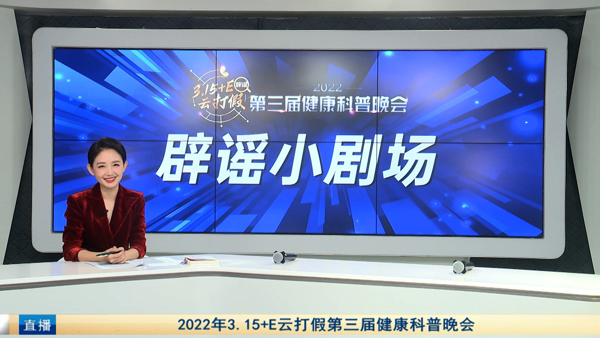 “315+E”云打假2022健康科普晚会,借助科普大咖的专业力量、依托辟谣平台的传播优势,打击涉医谣言、普及健康知识、造福社会大众,用科学的真相护佑人民健康。晚会得到了上海市卫生健康委员会、视频号的特别支持,海信激光电视给予了公益支持。晚会在人民健康、新华社中国金融信息中心、央视频、中国青年报、中国网、新浪微博、腾讯新闻、凤凰网健康、抖音、快手、腾讯视频、蝶代等多个平台同步直播。