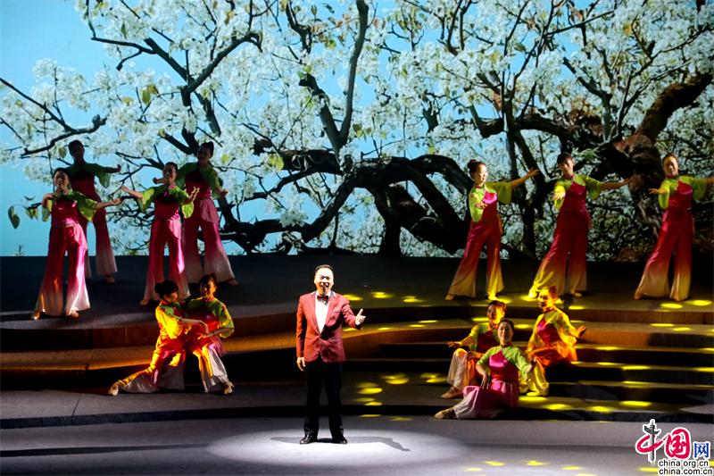“新村SONG·苍溪本色”大型组歌第一乐章“青史·绿色家园”不仅有饱含深情的对唱《云台》、优雅灵动的歌舞《寻乐》,《一亭绿》节目更通过歌舞与旁白的唯美演绎,展现了诗人杜甫的家国情怀;第二乐章“赤子·红色苍溪”通过实景演绎、音舞诗画等艺术表现形式,生动形象展现了红四方面军带领老区人民在苍溪展开英勇斗争、建设川陕革命根据地的艰苦历程和取得的辉煌成就,体现了“传承红色基因、赓续红色血脉、展现老区新貌”的创作追求;第三乐章“黄土·金色梨乡”以岫云村党支部书记李君返乡创业用电商带领群众致富为题材创作的组歌《年轻人你好好干》和充满浓厚地域特色的《苍溪娃儿》,将现场气氛推向高潮。精彩的演出引发观众强烈共鸣,台上台下成为一片欢乐的海洋,现场掌声雷动,经久不息。