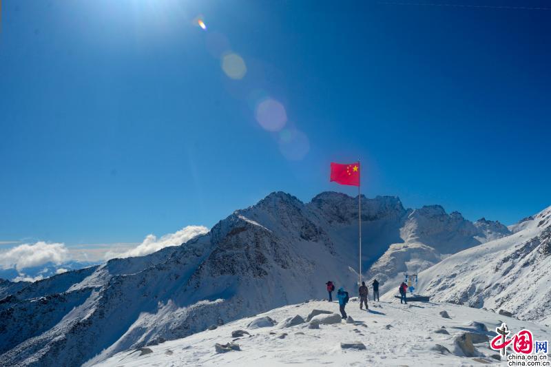 五星红旗打卡点,五星红旗的热烈红色与圣洁白雪将气氛烘托得庄严无比,面对随风飘扬的五星红旗,每个人都从心底油然而生一股敬畏感和自豪感。