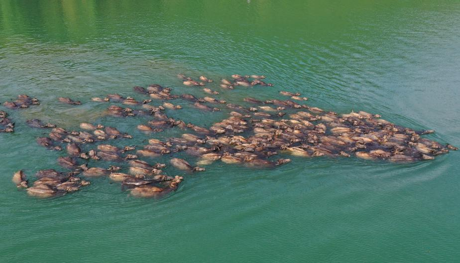 “在网络时代,‘云’动作也不是什么新鲜事了。但蓬安邀请八方宾客‘云上观牛’,属首次!”蓬安县文广旅局相关负责人介绍,疫情防控常态化,很多美景让游客神往而不能亲临。为此,本届嘉陵江放牛季启幕活动尝试运用航拍、地面直播等先进技术,近距离跟随百余头水牛横渡嘉陵江寻水觅食,以网络视频直播、全媒体平台图文综合形式,给观众呈现出一场独特的视觉盛宴。