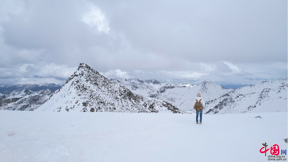 即将进入6月,达古冰川海拔高达4860米的雪山之巅依然是白雪皑皑,银装素裹,雪景壮观得令人挪不开眼。