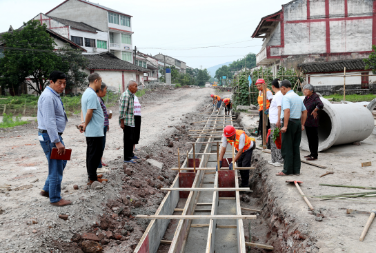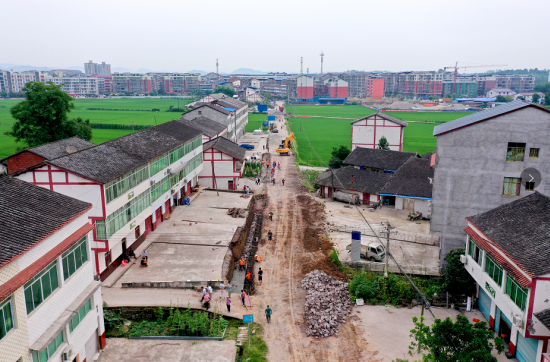 6月12日,在广安市广安区广花路花桥镇星火村到场镇搭接口路段,修路工人正在整治水沟、箱函、拆除杆线,一派热火朝天的建设场面。