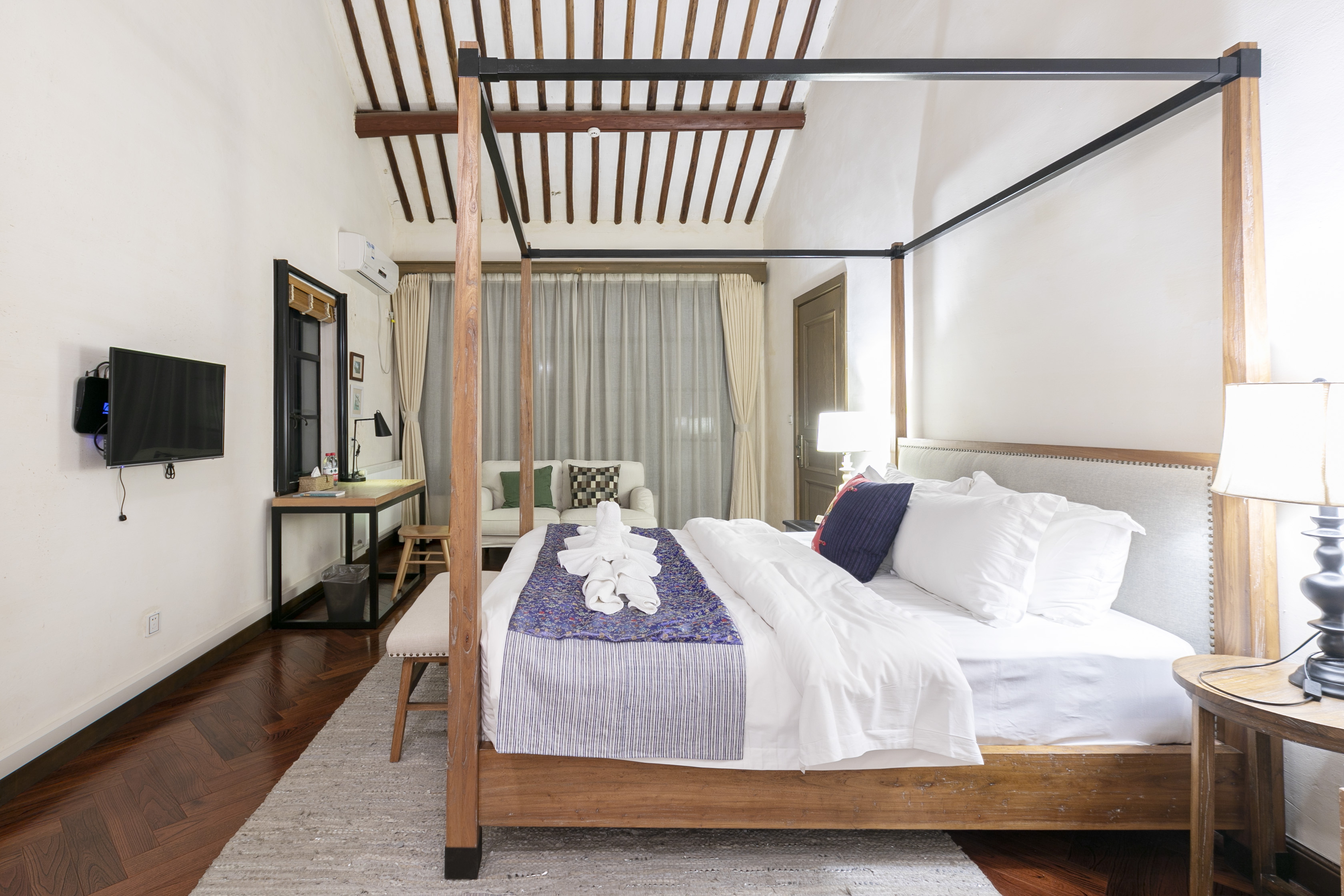 两层的农家别墅,满满的怀旧复古风,住宿条件也同样舒心,拥有三间客房、独立的客厅、书房、阳台、卫浴空间,可以满足一家人不同的出行需求。