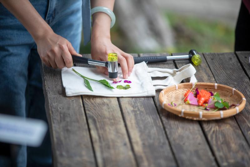 拿起画笔调好颜料,在香村书坊绘制一顶独一无二的手绘草帽,把夏天的模样戴在头上;在橡胶锤的见证下,让波斯菊和月见草在敲染中晕染出美丽的图画。