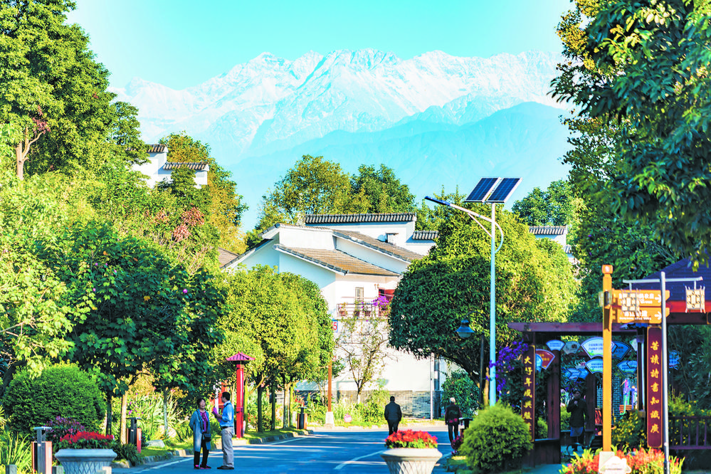 巍峨壮观的雪山之下,一栋栋川西民居格外美丽,蓝天碧空映衬着绿意盎然的村庄,美得摄人心魄。三年多前,一张“雪山下的战旗村”美图刷爆了成都人的朋友圈。