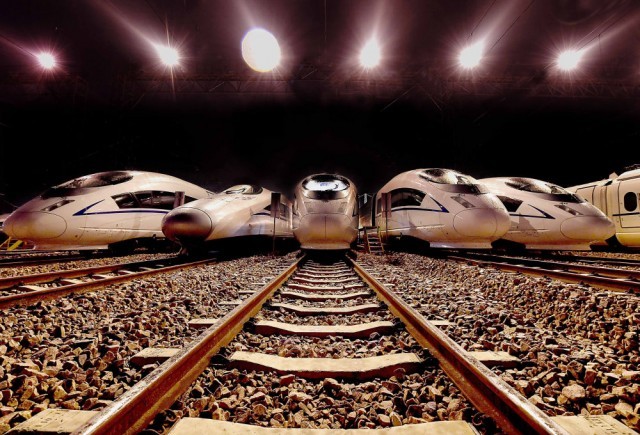 ↑动车组列车停靠在郑州动车段停车场,等候进库检修(2016年9月6日摄)。新华社记者 李安 摄