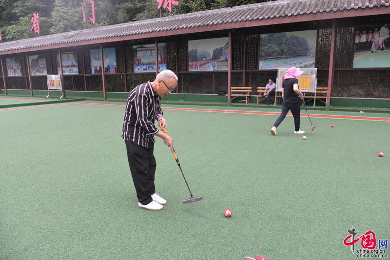 瞄准、击球、进门……6月21日上午,在曾家山门球场内,来自绵阳市的65岁游客刘西斌手持球杆,精神饱满地走上绿茵球场和他的队友们挥杆击球,十分热闹。蓝天白云、青山碧水、凉风习习,曾家山独特的生态气候,给他和队友们带来了舒适的体验感。