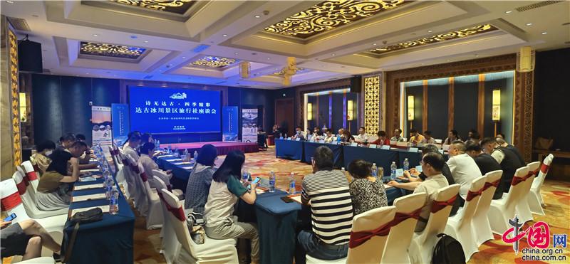 达古冰川党委书记唐华祥、达古冰川管理局副局长黄仕海、阿坝文化旅游发展有限公司邹敬、阿坝大九寨旅游集团大冰川公司总经理敬华琼、羊绒哈德村书记木尔甲以及35家成都地区旅行商社、自驾俱乐部代表参加座谈会。
