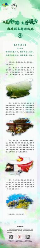 纳清风台榭开怀,傍流水亭轩赏心。在这个夏日炎炎的季节让我们暂别都市的喧嚣,“一路西行”寄情于生态宜人的山水之间。在这里,西山的青、古刹的黄、京西的红、门头沟蓝……山水人文,色彩斑斓,特别是断流近30年的永定河北京段再次流动起来,百里永定河再泛清波,一幅美丽灵动的生态画卷正在徐徐展开。为推进门头沟区绿色高质量发展,提升文旅消费空间和产品供给品质,7月至8月,门头沟区文化和旅游局以“今夏避暑游,生态门头沟”为主题,推出了“红色历史”“清凉消夏”“科普研学”“门头沟小院”四大板块内容,10条夏日微度假文旅体验线路,线路以门头沟的红色文化、生态山水、古村古道、民间民俗、特色美食等文化为依托,以旅游景区、京西古道、门头沟小院等文旅体验品牌为消费场景,涉及了妙峰山镇平西情报站、百花山景区、中国传统古村落苇子水村、门头沟小院等20余处特色文旅资源,加强文旅农商体等多业态融合,为广大游客避暑纳凉、乐享田园乡间慢生活提供了更多选择空间。